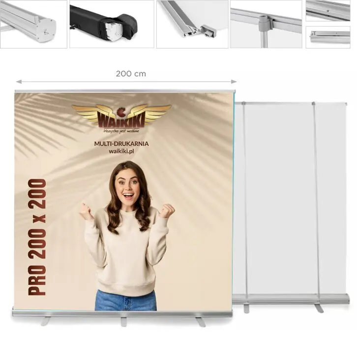 - Wymaga równego podłoża: Roll-up wymaga stabilnej i równej powierzchni, na której będzie ustawiony, aby działał poprawnie.