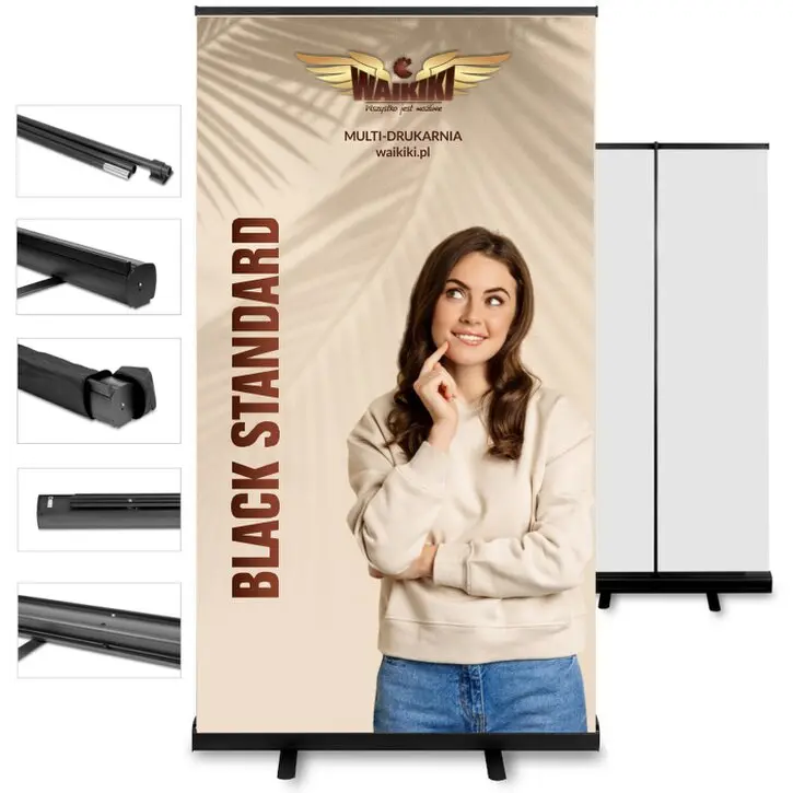 - Wymaga równego podłoża: Roll-up wymaga stabilnej i równej powierzchni, na której będzie ustawiony, aby działał poprawnie.